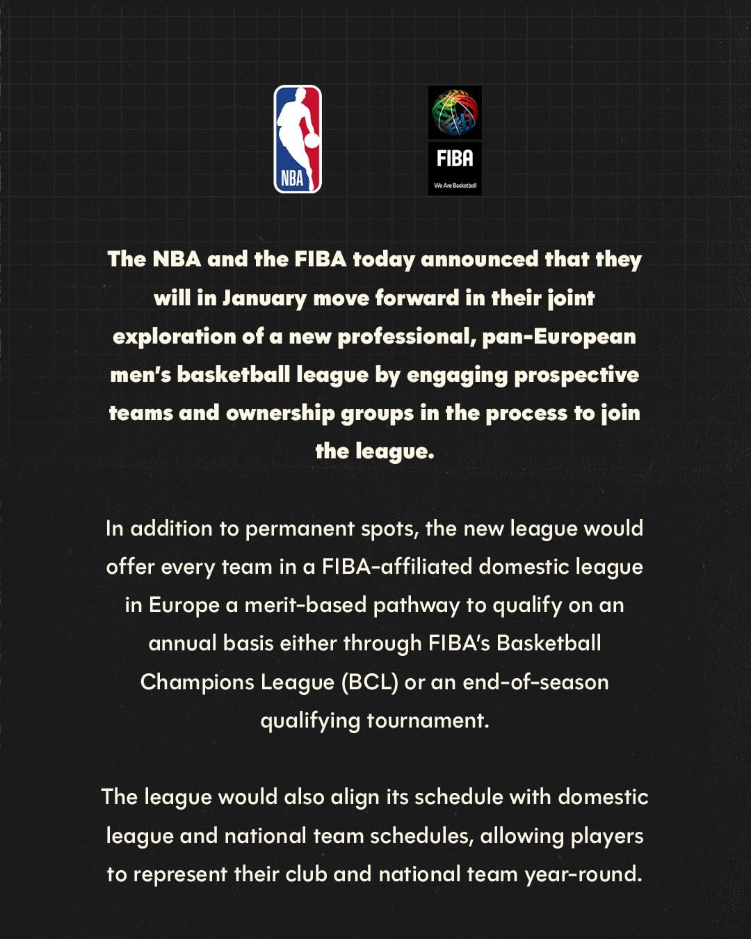 际篮球联络会(FIBA)今日公布美国国度篮球协会(NBA)和国,职业泛欧洲须眉篮球联赛的经过将于1月推动联络寻找创建新,有权集团到场同盟邀请潜正在球队及所。